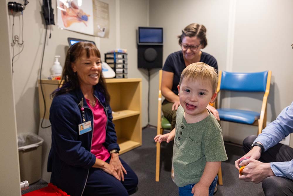 Your family will come to the Carle ECHO building to have a hearing test. ECHO stands for “Expanding Children’s Hearing Opportunities.”
